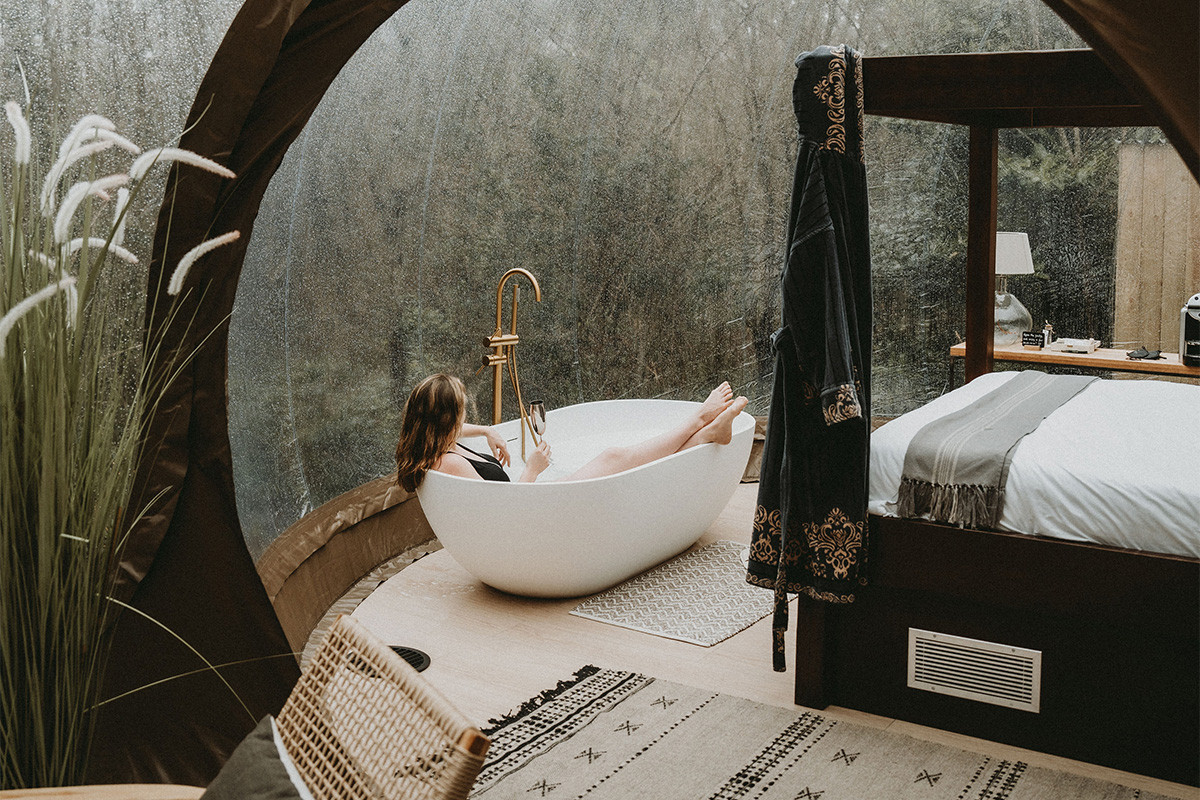 Die Gastgeber haben ein Gespür dafür, wie man dieses Unverfälschte zupft und weitergibt, unter anderem in Form von «Slow Food»: Im Restaurant «Lasair» kommt auf die handlichen Teller, was eben gerade noch nebenan gekeimt, gesprossen oder gereift ist. Sprich: In den Wäldern, im Küchengarten oder bei benachbarten Bauerhöfen: «Das Abendessen schmeckt immer besser, wenn man weiss, woher die Zutaten kommen und mit wie viel Fürsorge sie angebaut wurden», davon ist Gillian überzeugt. Abende enden hier oft an der Hausbar, mit Craft-Bieren oder Cocktails aus Zero-Waste-Botanicals. Schliesslich folgen auf die klitzekleinen Bubbles im Glas jene komfortablen aus Glas. Man bettet sich in der Wiege des Waldes für den einzigen aller «Termine»: Sternegucken. In dieser Blase der Behaglichkeit spürt man: Man könnte Platzen vor Glück. Ein wenig wie ein Komet, der mit einer leisen Explosion die Atmosphäre durchbricht, um sich dann wieder in der Unendlichkeit zu verlieren.