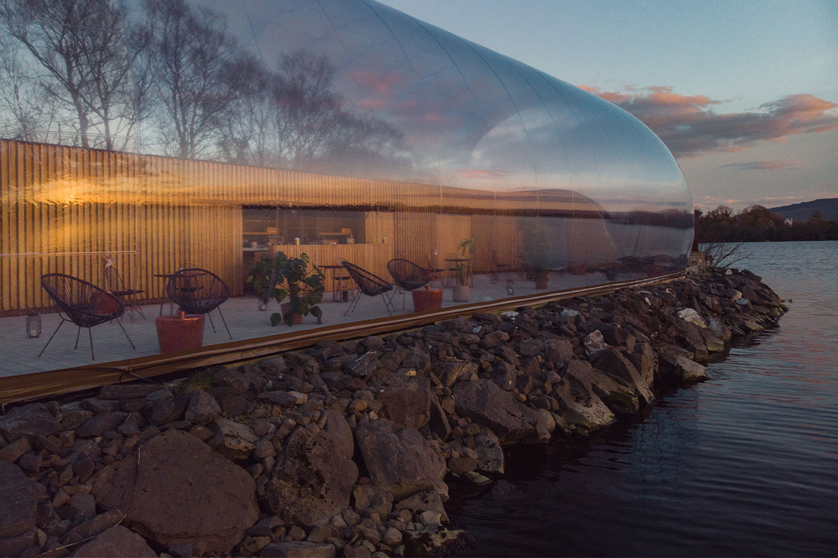 Hier, irgendwo im grünen Labyrinth Irlands, verbirgt sich Finn Lough, der mehr als ein See zu sein scheint. Es ist, als wären Wasser und Wolken ein Pärchen, das sich ein Leben lang kennt und doch in frischer Verliebtheit schwelgt. Als wären die Kuppeln am Ufer, die im Mondlicht schimmern, ihr Schmuck; wie Trauringe mit Perlen ragen sie in die Uferlandschaft. Oder sind es stabile Seifenblasen, die nur dank der Verankerung im Boden nicht davonschweben …? Am stillen See, der selbst wie eine schillernde Blase daliegt, übernachten Gäste in «Bubble Domes» – nur durch ein gewölbtes Glas getrennt vom Wald und dessen Weckrufen, wie etwa einem Morgenbad im kühlen Nass.