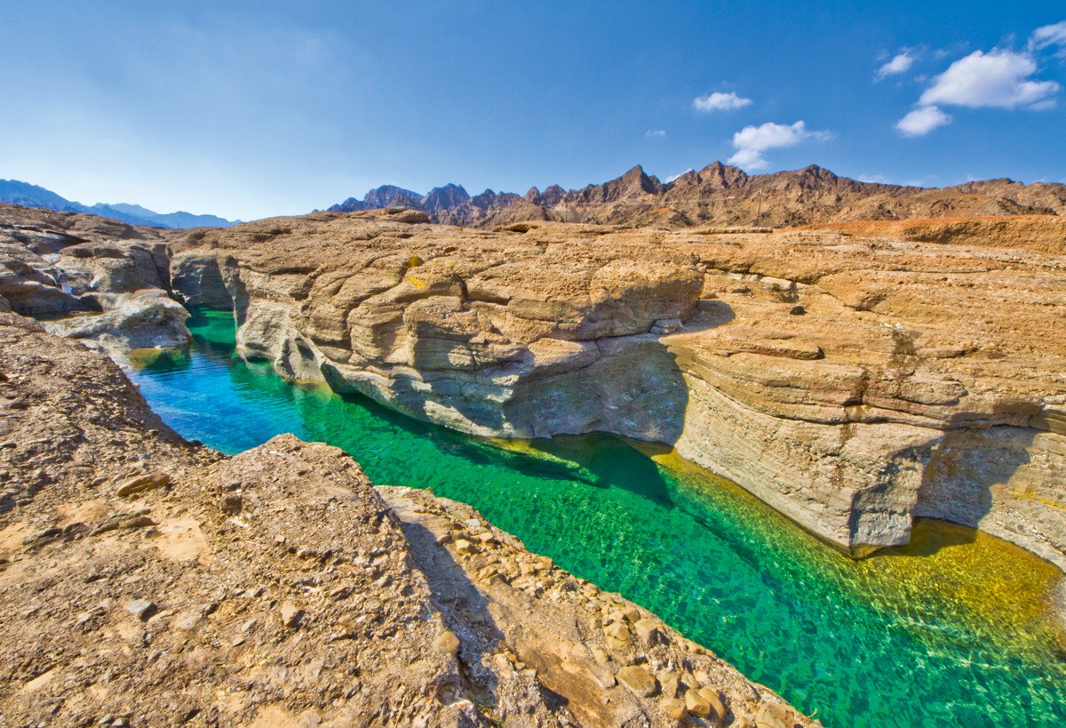 Das sind nur einige der Wunder, die der Ozean Oman schenkt. Weiter nördlich, nahe Sur, kriechen in stillen Nächten Schildkröten an den Strand und legen ihre Eier ab; in den unberührten Fjorden Musandams, wo das Meer sich zwischen Felsen und Fjorde zwängt, gleitet man auf einer hölzernen Dhau durchs Wasser und begegnet Fischen und Schildkröten. Schliesslich schnorchelt man im gewaltigen Schatten von Walhaien nahe der Küste Maskats, wo die Reise begann – vor gefühlt tausendundeiner Nacht.
