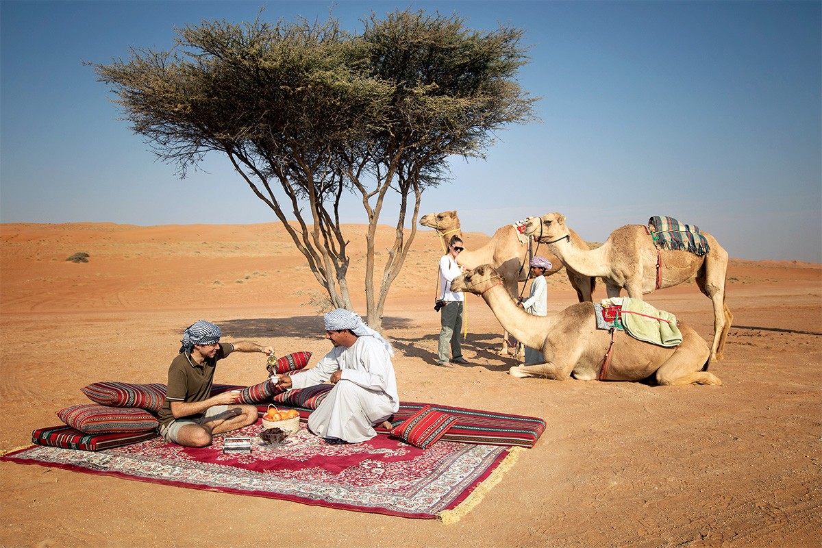 Tatsächlich ist der «Muttrah Souq» nur ein anregender Ausschnitt aus einem weitaus grösseren kulturellen Mosaik: Die Geschichte des Omans reicht über 5000 Jahre zurück – und damit jene der Handwerkskunst und des Handels. Dieser hat nicht nur Waren hinterlassen, sondern Werte: Die Omanis haben einen tiefen Sinn für herzliche Gastfreundschaft und der Kultur der «offenen Türen» verinnerlicht, die sich nicht zuletzt durch diese jahrhundertealte Tradition des Handels, der Verbundenheit mit dem Rest der Welt, den kulturellen Austausch verankert hat. Symbolisch dafür steht «Khawa», eine wahre Zeremonie der Gastfreundschaft: Verfeinert mit Kardamom oder Nelken, dampft der arabische Kaffee aus kleinen, henkelfreien Tassen, stets begleitet von Süssem oder Datteln – meist in ungerader Zahl, als Glückbringer. Wer ausgetrunken hat, dem schenken die Gastgeber selbstverständlich höflich nach – so lange bis man das Zeichen gibt, genug zu haben, indem man die Tasse diskret zwischen den Fingern schwenkt.