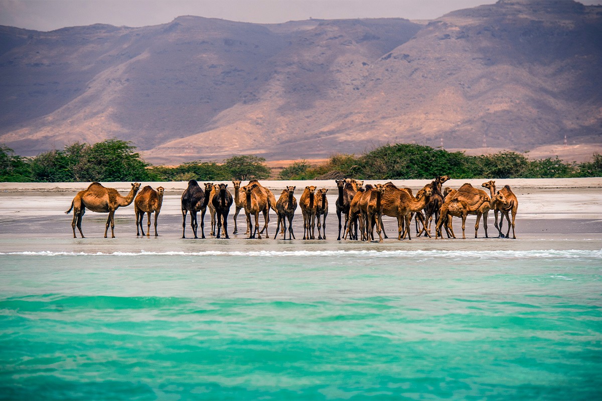 Für ein Sinneserlebnis der anderen Art braucht man die Nase nicht etwa hoch in die Luft zu strecken, sondern unter Wasser: An den noch wenig erforschten Tauchplätzen von Dhofar offenbart sich eine stillere, salzige Szenerie – so reich an Mustern und Farben, dass sie beinahe an die quirligen Souks erinnern. Zwischen intakten Korallen, die wie versteinerte Farbträume wirken, tummeln sich Fischschwärme, Papageienfische huschen vorüber, Rochen segeln vorüber, Schildkröten schwelgen durch das Tiefblau während weiter unten Barrakudas patrouillieren. Wer nicht in das Arabische Meer abtauchen möchte, kann mit etwas Glück von den Klippen aus Delfine beobachten, die wie silberne Pfeile nach Sardinen jagen, oder gar einen Wal-Rücken erspähen.