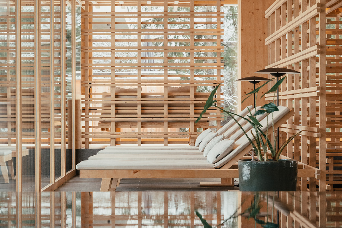 Kaum betritt man das Wellnesshotel «Sensoria Dolomites», in ehrfürchtiger Nachbarschaft des Schlernmassivs, stellt sich eine ungeahnte Achtsamkeit scharf. Man erblickt das wohlfühlwarme Licht, das durch die dekorative Balkenkonstruktion in japanischer Architektur fällt. Man lauscht, wie der Alpenwind über die bizarren Felskanten säuselt und das Wasser im Aussenpool des Spas gluckert. Der Geruchssinn fängt Fichtenholz, Bergkräuter und subtile Noten aus der Gourmetküche ein.